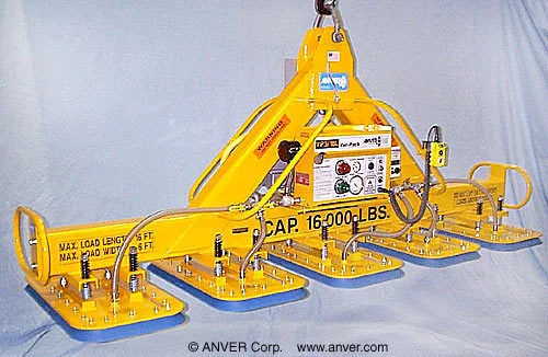 ANVER E1600M5-120F sheet lifter, 16,000 lb capacity, brand new. Ideal for handling large sheets with precision. Manufactured by ANVER, designed for industrial efficiency.