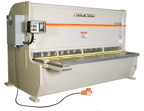 ACCURSHEAR 63758 Power Squaring Shear offers 0.375" max thickness, an 8' blade, and a 36" back gauge. Powered by 30 hp, it delivers 24 strokes/min. Hydraulically driven, it's ideal for precision cutting in industrial settings. Condition: new.