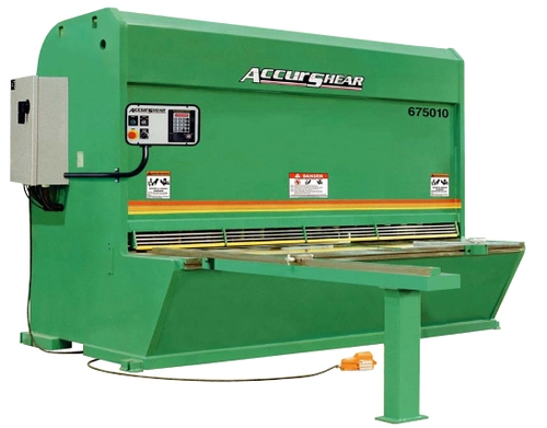 For sale: New ACCURSHEAR 6100016 Power Squaring Shears. Features hydraulic operation, 16' blade length, 1" max thickness, 48" back gauge, and 75 hp power. Capable of 9 strokes/min. Ideal for precision metalworking projects.