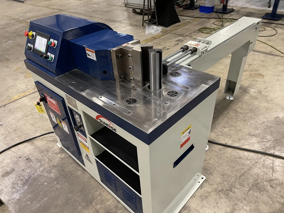 The SUNRISE hydraulic bending machines, available in either 45 or 82 tons, offer a wide range of tooling for different bending operations. Custom tooling is also available.