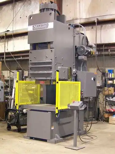 The model DC is an exceptionally heavy duty C-frame style press that is specifically designed to handle virtually any application. It is perfect for applications requiring off-center and center-loads and un-even and even tonnages across the bed. Available in tonnages from 40 up to 600 tons (larger tonnages available with special quote). It can be used for metalworking, plastics, fabrics and many other materials as well.
