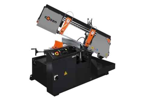 COSEN SH-460M, a new horizontal band saw, offers a 10" height and 15.7" width cutting capacity. Powered by 2 hp, it features a 1" wide, 0.035" thick blade with a 132" length, ensuring precise and efficient cutting.