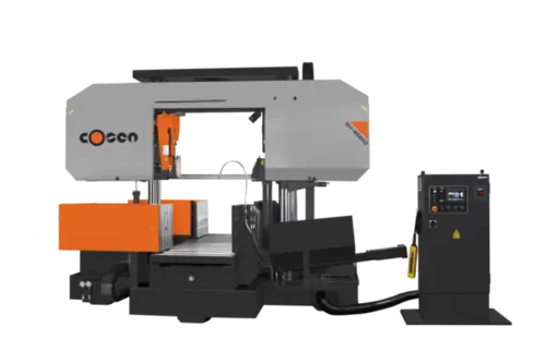 COSEN SH-8580D Horizontal Band Saw available new. Offers a rectangular capacity of 31.5" x 33.5", round/square capacity of 31.5", powered by 10 hp, with a 2.6" wide, 0.06" thick blade that measures 332" long. Ideal for high-precision cutting.