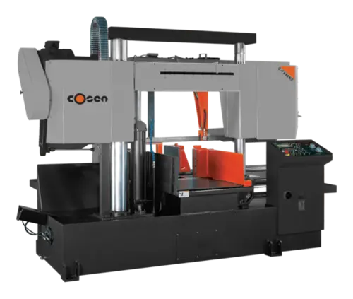 COSEN C-7656NC, a new horizontal dual column band saw, offers impressive cutting dimensions with a rectangular capacity height of 22 inches and width of 30 inches. Ideal for precision and robust operations.