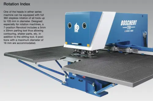 BOSCHERT TRI 810, new turret punch, offers 28 T of tonnage for efficient and powerful metalworking. Ideal for high-precision tasks, this model reflects the reliability and innovation synonymous with BOSCHERT.