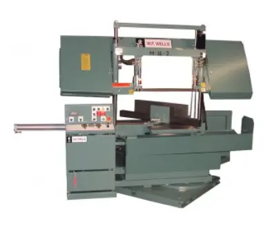 W.F. WELLS M-16-2 horizontal band saw in new condition offers precision cutting with a 15" height and 26" width rectangular capacity. Equipped with a 1.25" wide, 0.042" thick, and 200" long blade for optimal performance in demanding tasks.
