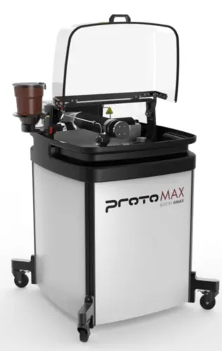OMAX PROTOMAX waterjet cutter, brand new, delivers 30,000 PSI pump output with a cutting area of 12" x 12" x 1". Compact table size of 14.5"W x 15.25"L and powered by 3.7 kW. Ideal for precision cutting needs.