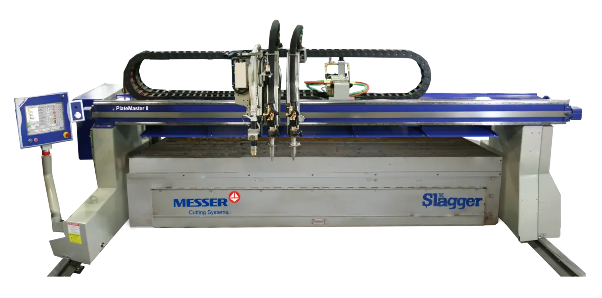 Messer Cutting Systems’ PlateMaser II is an economical solution for plate cutting needs. Rugged floor-mounted rails are machined from 90 lb/yd crane rail stock and heavy, internationally gusseted end trucks support the dual box beam for smooth motion.