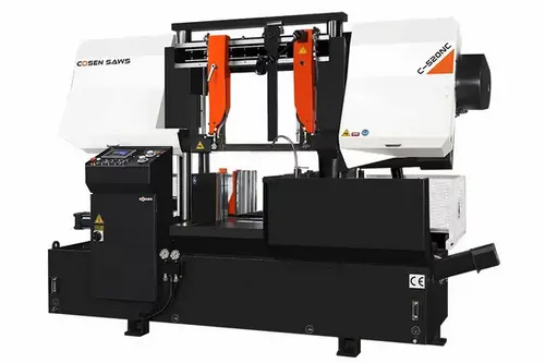 520mm Automatic horizontal dual column type band saw incorporates a 7.5 hp powerful blade motor, 54 (mm) wide blade, independent control panel, and heavy-duty dual column design. These features create a very rigid, dynamically stable, and productive machine. The oversized precision ground columns ensure smooth saw frame movement and the consistently stable cutting force required throughout the cutting cycle, thereby increasing the cutting efficiency and extending blade life.