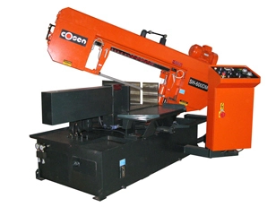 COSEN SH-600DM Horizontal Band Saw, new condition. Features: 13"x23.6" rectangular capacity, 13" round capacity, semi-automatic, 5 hp motor. Blade specs: 1.3" width, 0.042" thickness, 192" length. Ideal for precision cutting tasks.