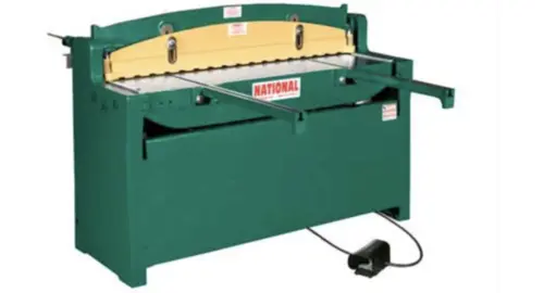 NATIONAL SHEET METAL NA5216 power squaring shear, new condition, handles up to 20-gauge material. Features include a 52" blade length and operates at 40 strokes per minute.